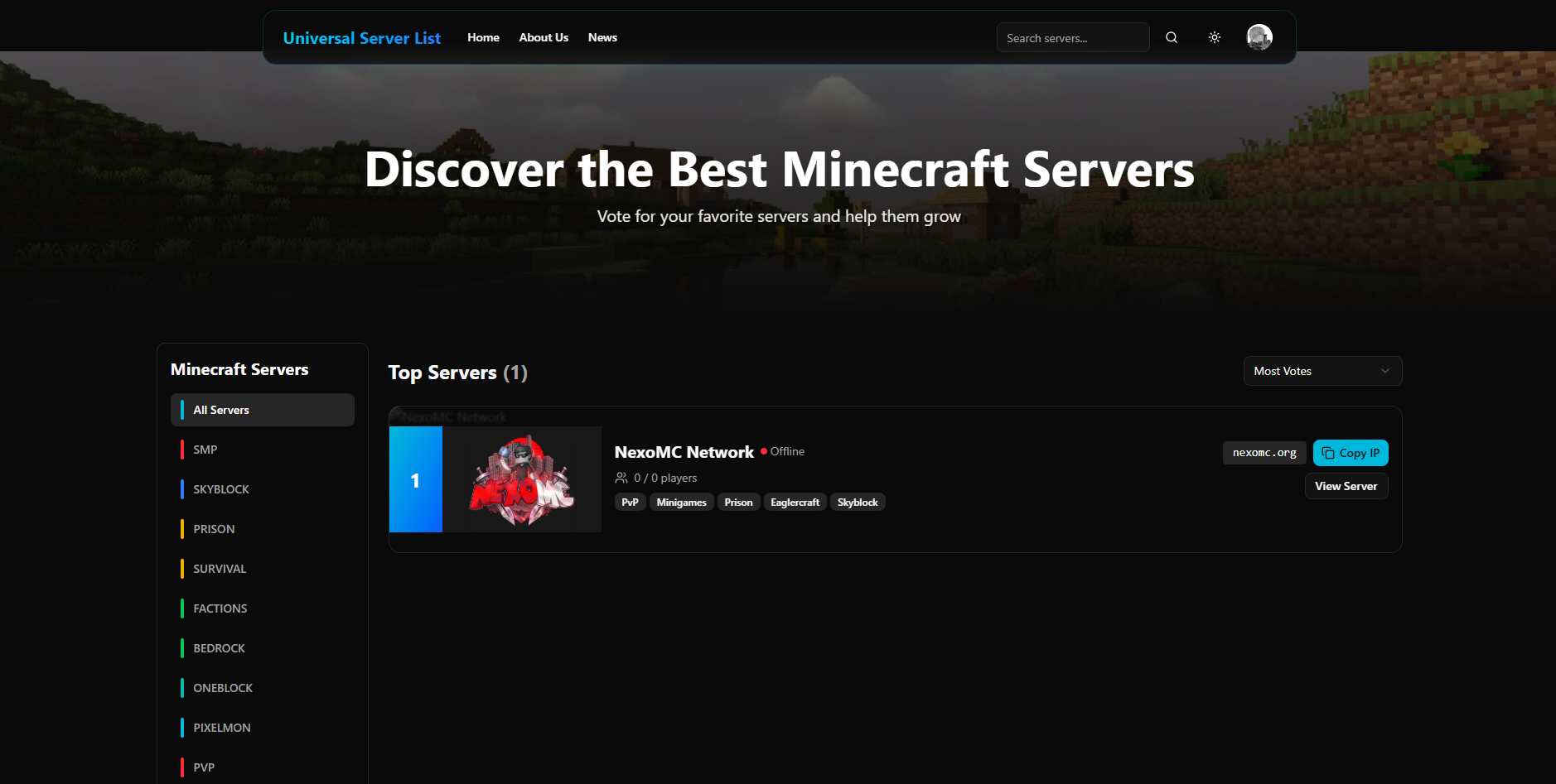 A comprehensive server list for Minecraft, allowing users to discover and connect to various servers easily.